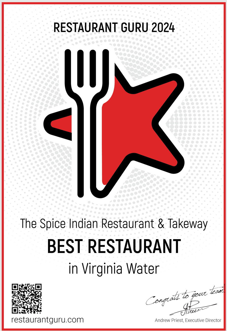 Super food, great staff, lovely cosy restaurant, we have been ordering take aways since you've opened, first time in the restaurant with friends from Wimbledon, they loved it so much that they will have no problems driving 30 minutes to eat at the Spice again. We will definitely see you soon and still will use your excellent take away/delivery serivice.